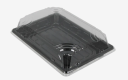 Ontdek onze stijlvolle sushitray met deksel, perfect om sushi mooi te presenteren én vers te houden. De zwarte tray heeft een formaat van 18,5 x 13 x 2 cm. De transparante deksel klikt stevig vast, zodat je bereidingen zowel vers als goed zichtbaar blijven.