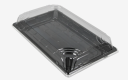 Ontdek onze stijlvolle sushitray met deksel, perfect om sushi mooi te presenteren én vers te houden. De zwarte tray heeft een formaat van 23,7 x 14,5 x 2 cm. De transparante deksel klikt stevig vast, zodat je bereidingen zowel vers als goed zichtbaar blijven.